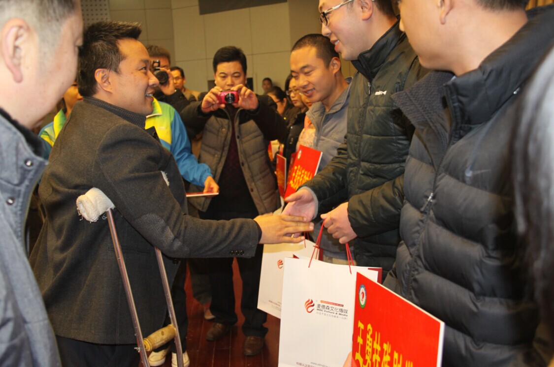 12月2日,為慶?!皣H殘疾人日”,山東麥德森文化傳媒有限公司、山東中醫(yī)藥大學(xué)、山東省肢協(xié)、山東省殘疾人福利基金會(huì)在長清大學(xué)城舉行“攜手殘疾大學(xué)生,共圓燦爛中國夢(mèng)”---王勇扶殘助學(xué)基金發(fā)放儀式暨全國自強(qiáng)模范孫建博勵(lì)志事跡展播活動(dòng)。公司董事長王勇、山東中醫(yī)藥大學(xué)副校長田立新、山東省殘聯(lián)主席團(tuán)秘書處辦公室主任李新蘭、山東省殘疾人福利基金會(huì)辦公室主任王雪磊、全體學(xué)團(tuán)干部、2014級(jí)新生及60余名殘疾學(xué)生參加了此項(xiàng)活動(dòng)。