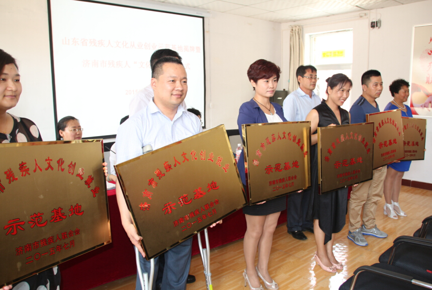 7月13日,“山東省殘疾人文化從業創業示范基地暨濟南市殘疾人文化創業就業示范基地”揭牌活動在平陰綠澤畫院舉辦,同時濟南市殘疾人文化周活動正式啟動。我公司等6家企業成為首批“濟南市殘疾人文化創業就業示范基地”。