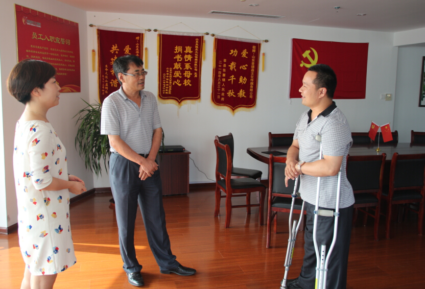 7月24日,山東省殘疾人聯合會宣文部鞠少華部長一行到我公司調研指導殘疾人文化從業工作,并對我公司剛剛獲得的“濟南市殘疾人文化創業就業示范基地”稱號表示祝賀。