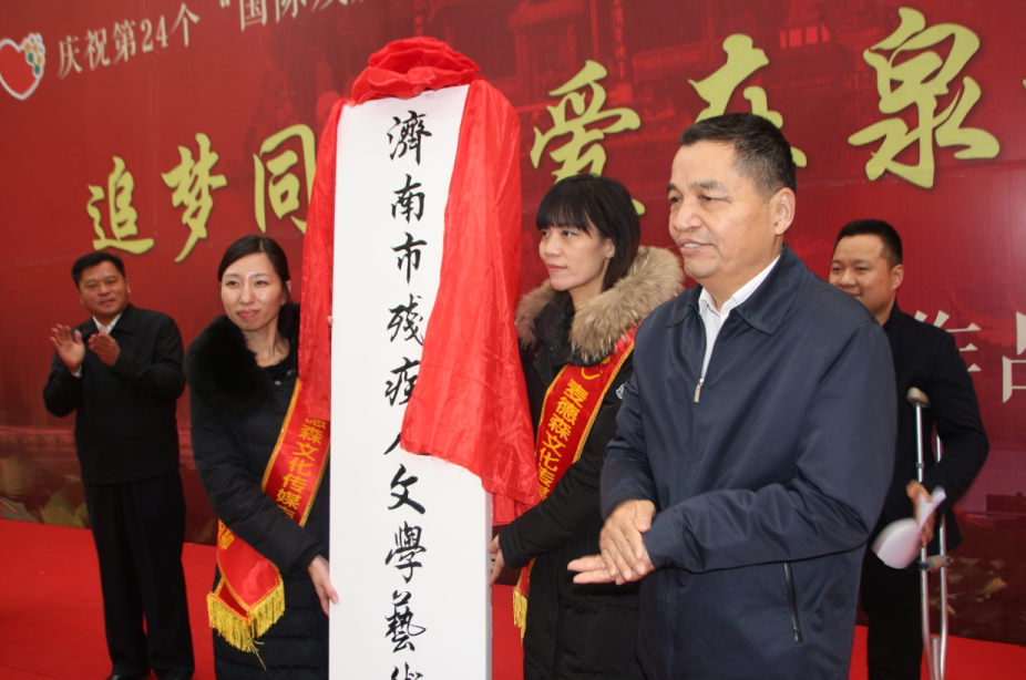 儀式首先由市殘聯副巡視員劉紅衛簡要介紹了成立濟南市殘疾人文聯的相關情況,其次由市文聯黨組書記、副主席劉溪就市殘疾人文聯成立致賀辭,市殘聯黨組書記、理事長孫君濤為市殘疾人文聯顧問頒發聘書,市委常委、市總工會主席、市殘聯主席團主席王以才為“濟南市殘疾人文學藝術界聯合會”揭牌。最后由公司董事長、濟南市殘疾人文聯首屆主席王勇發表致辭。