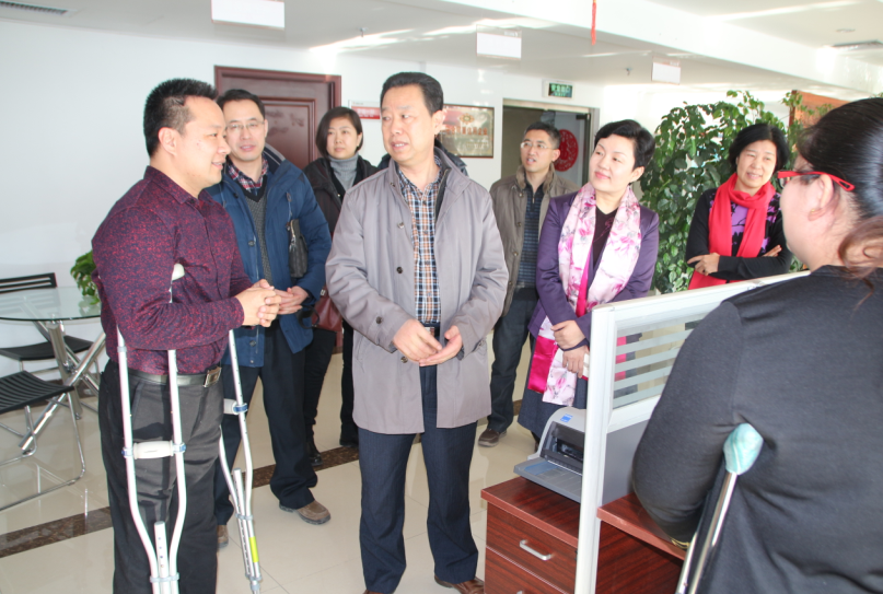 省人社廳及山東中醫(yī)藥大學領導在公司董事長王勇的帶領下參觀了公司的辦公場所和文化長廊,各位領導對企業(yè)文化氛圍與工作熱情表示了肯定,而且對王勇董事長積極吸收優(yōu)秀殘疾人員工的做法表示贊揚。針對“山東大學生十大創(chuàng)業(yè)之星”的評審,王勇董事長從個人簡介、企業(yè)介紹、業(yè)務開展情況及新業(yè)務的拓展、發(fā)展愿景、助殘活動等方面向省人社廳領導進行詳細匯報,匯報過程中省人社廳副巡視員姜清海對王勇董事長的創(chuàng)業(yè)毅力和積極幫助殘疾人的精神表示了高度欣賞,并不斷提出建設性的意見和建議。