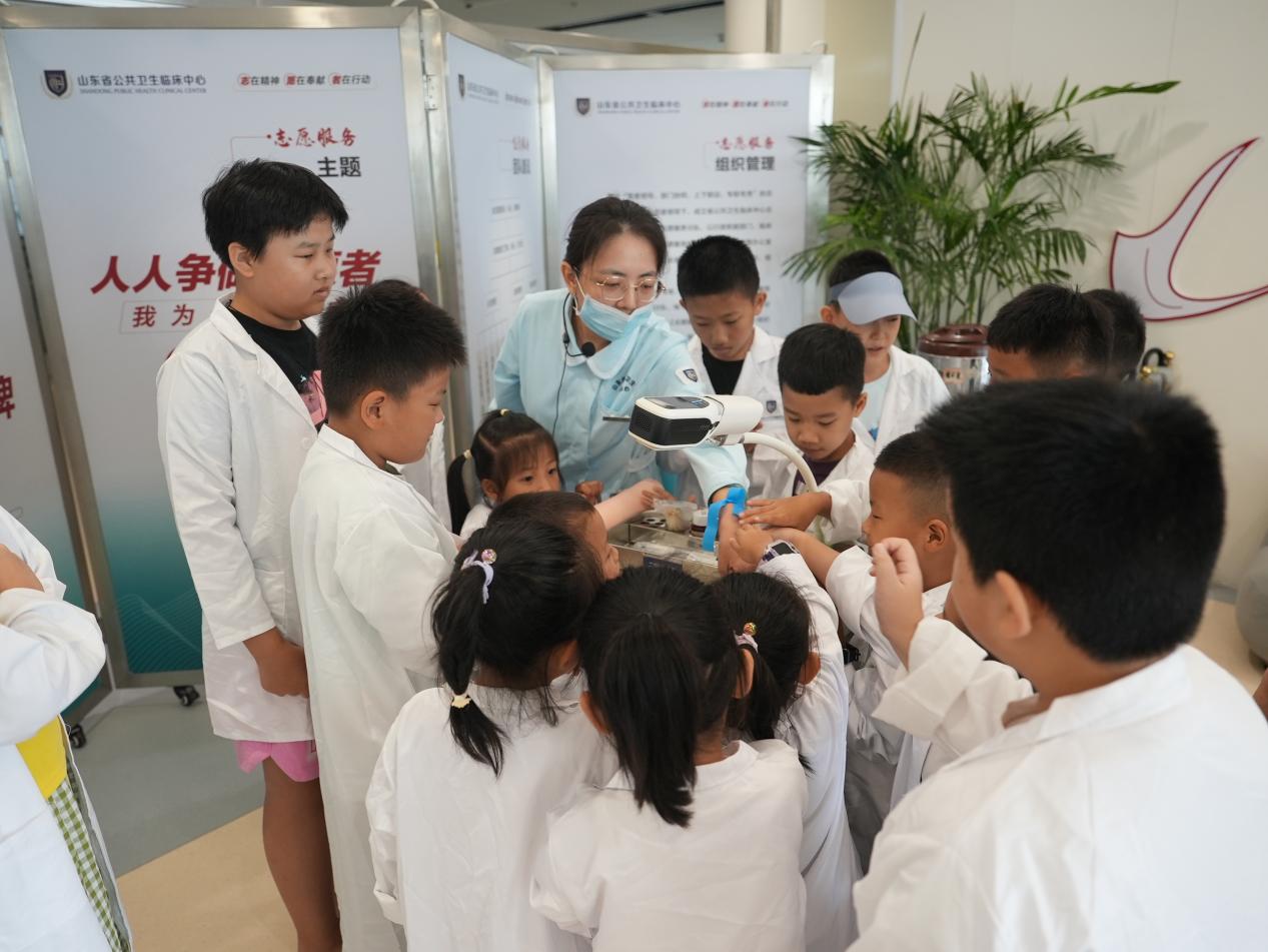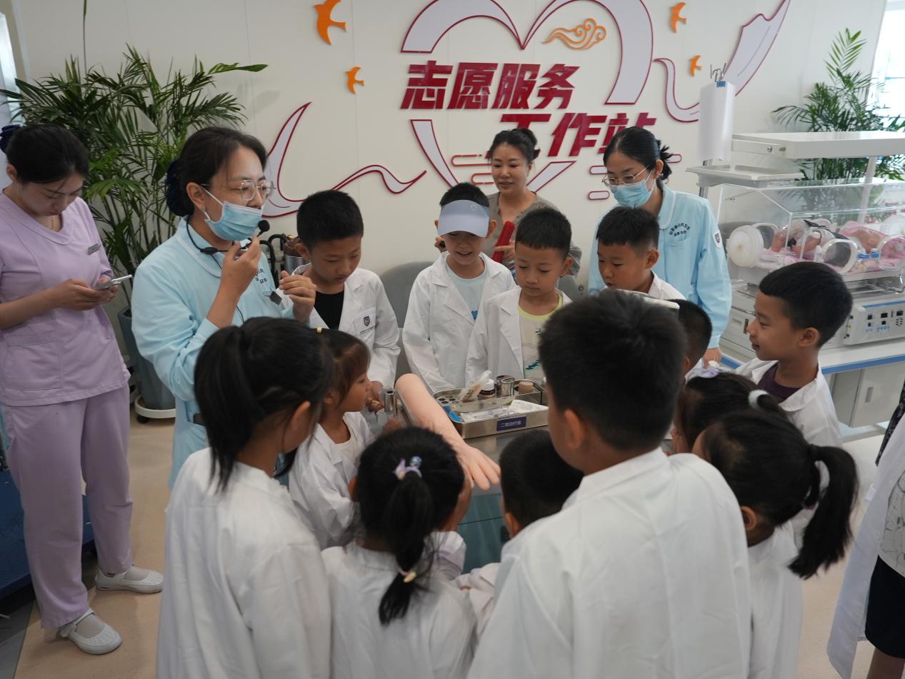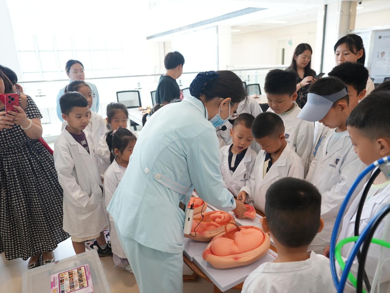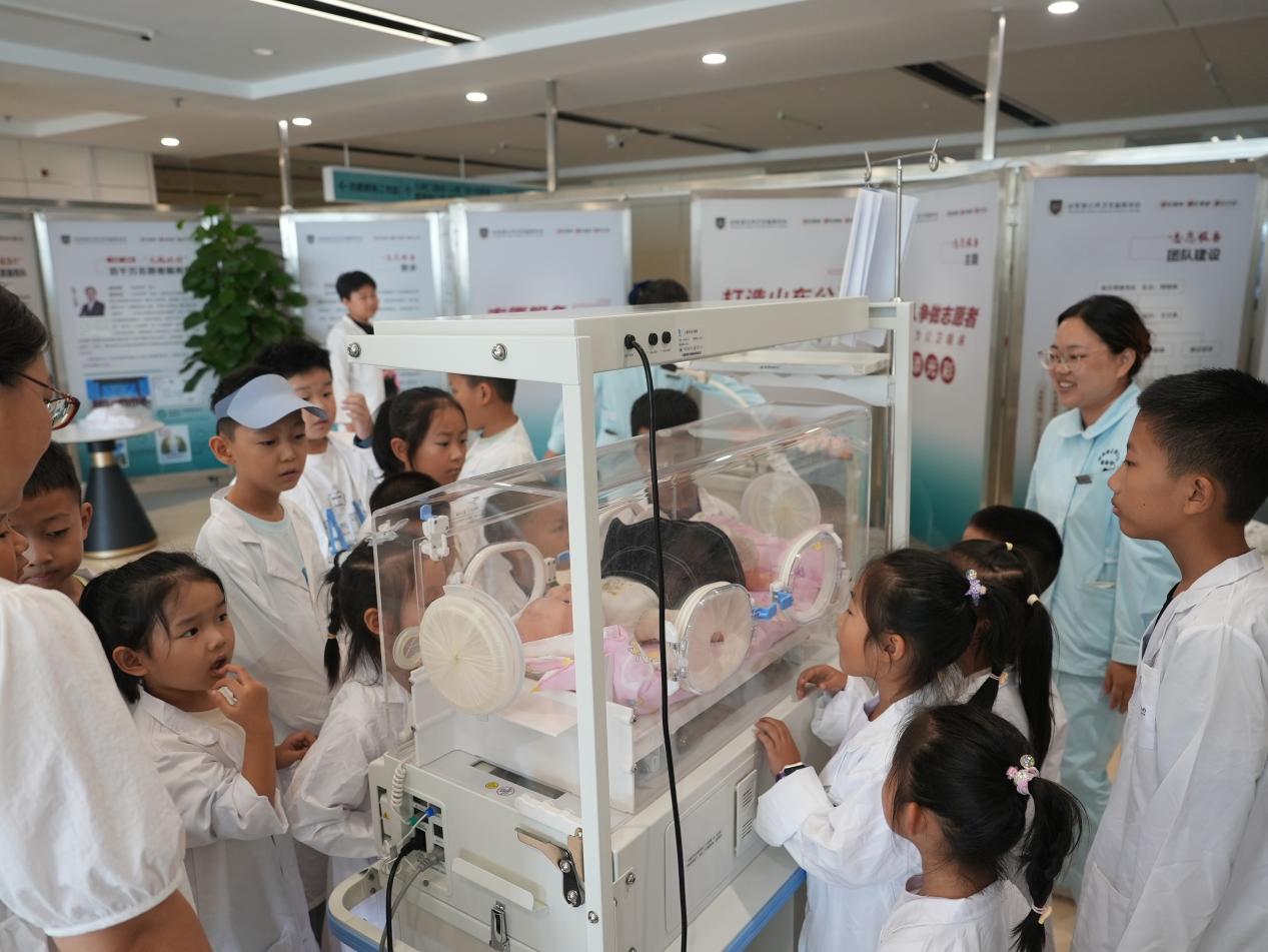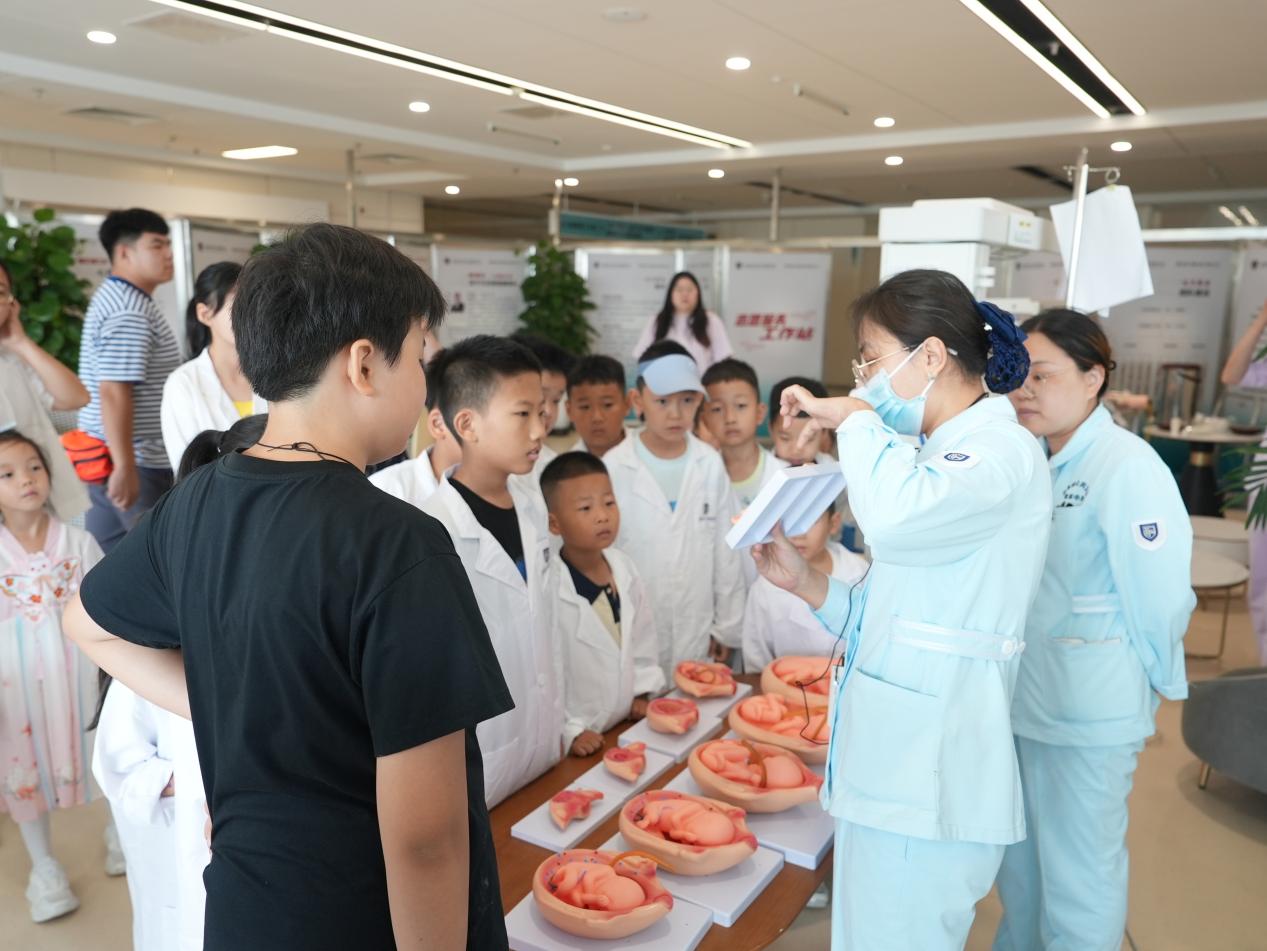 活動伊始,山東省公共衛生臨床中心的工作人員以生動有趣的方式為孩子們拉開了研學的序幕。工作人員通過精心準備的模型和現場演示,向孩子們詳細展示了生命的誕生過程。從媽媽懷孕時身體的微妙變化,到呱呱墜地后進入保溫箱的溫暖呵護,每一個環節都讓孩子們聽得津津有味、看得目不轉睛。孩子們紛紛發出驚嘆,對生命的神奇有了更深刻的認識,也更加懂得了媽媽孕育自己的辛苦。