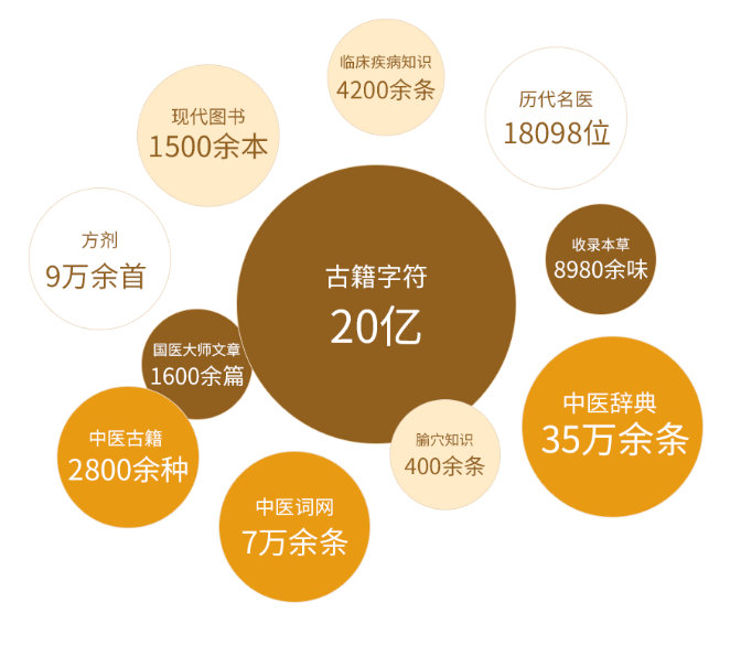 “博覽醫書”涵蓋了16大數據庫,從基礎古籍庫中精選的戰國至清朝時期750余種中醫基礎類典籍,到專科古籍庫中590余種專科類典籍,再到珍稀古籍庫、域外古籍庫。此外,病種醫學庫收錄的400余個病種、中醫方劑庫中的9萬余首方劑、中醫本草庫的8980余味本草等,全方位、多層次地展現了中醫藥的豐富內涵。“博覽醫書”聯合領域專家人員對2800余種中醫藥古籍文獻進行數字化處理,形成超過20億的中醫古籍數據字符。運用大數據與人工智能技術,對資源進行分類、標注與關聯,構建知識詞網超過7萬條。