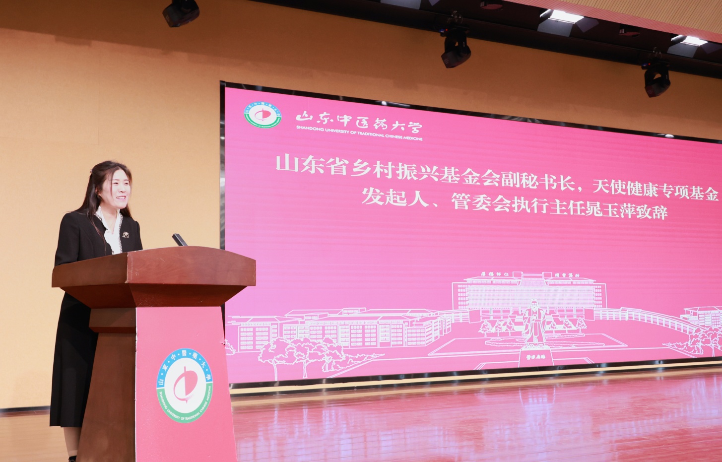 晁玉萍秘書長在致辭中系統介紹了山東省鄉村振興基金會、天使健康專項基金以及“未來扁鵲基金”的發展概況與核心內容。她表示,天使健康專項基金將繼續發揮平臺優勢,整合社會資源,為健康中國與鄉村振興戰略提供堅實的人才支撐。
