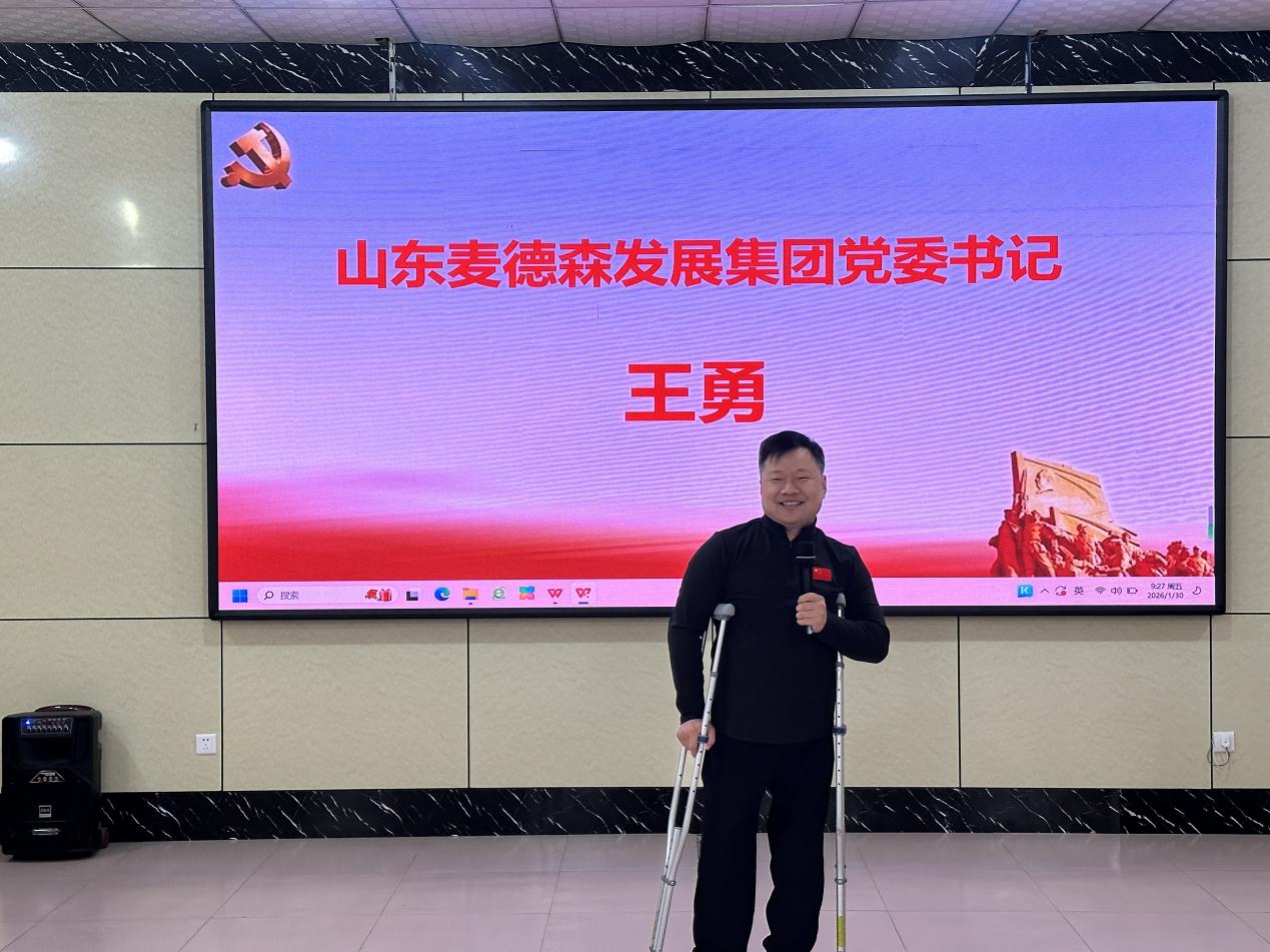 山東麥德森發展集團黨委書記、董事長王勇作為特邀嘉賓參加活動,代表集團黨委向學生們捐贈愛心物資,并現場發表講話。