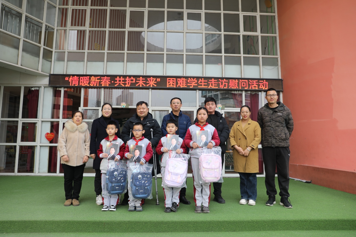 離開唐冶小學后,慰問團隊馬不停蹄地前往唐官小學。在這里,慰問團同樣為該校的4名困難學生送上了“新春愛心禮包”。