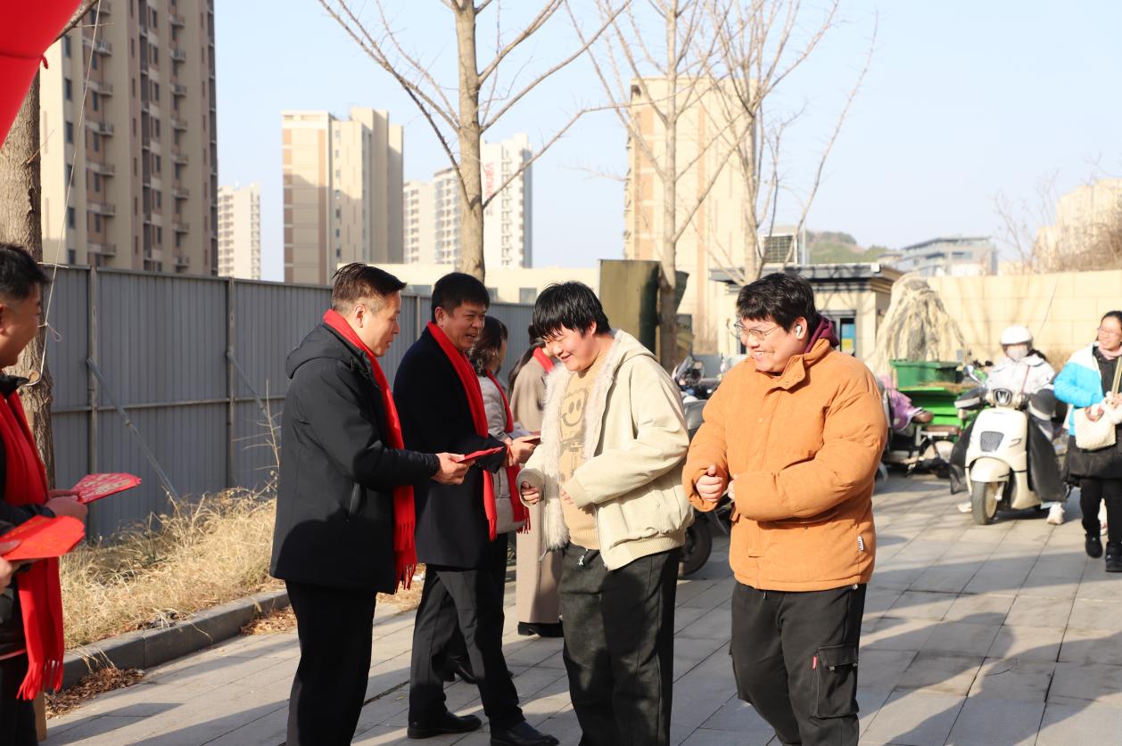 清晨的陽光灑落,王勇書記、王興法副董事長,張天君總經理與各部門負責人分列兩側,將一個個滿載祝福的開工紅包遞到員工手中,親切地道一聲“新年好”“開工大吉”。王勇書記不時與員工簡短交流,詢問大家春節假期的生活情況,并勉勵大家新的一年繼續保持奮斗姿態。一聲聲溫暖的問候、一句句真摯的祝福,讓節后第一天的園區門口暖流涌動、喜氣洋洋。