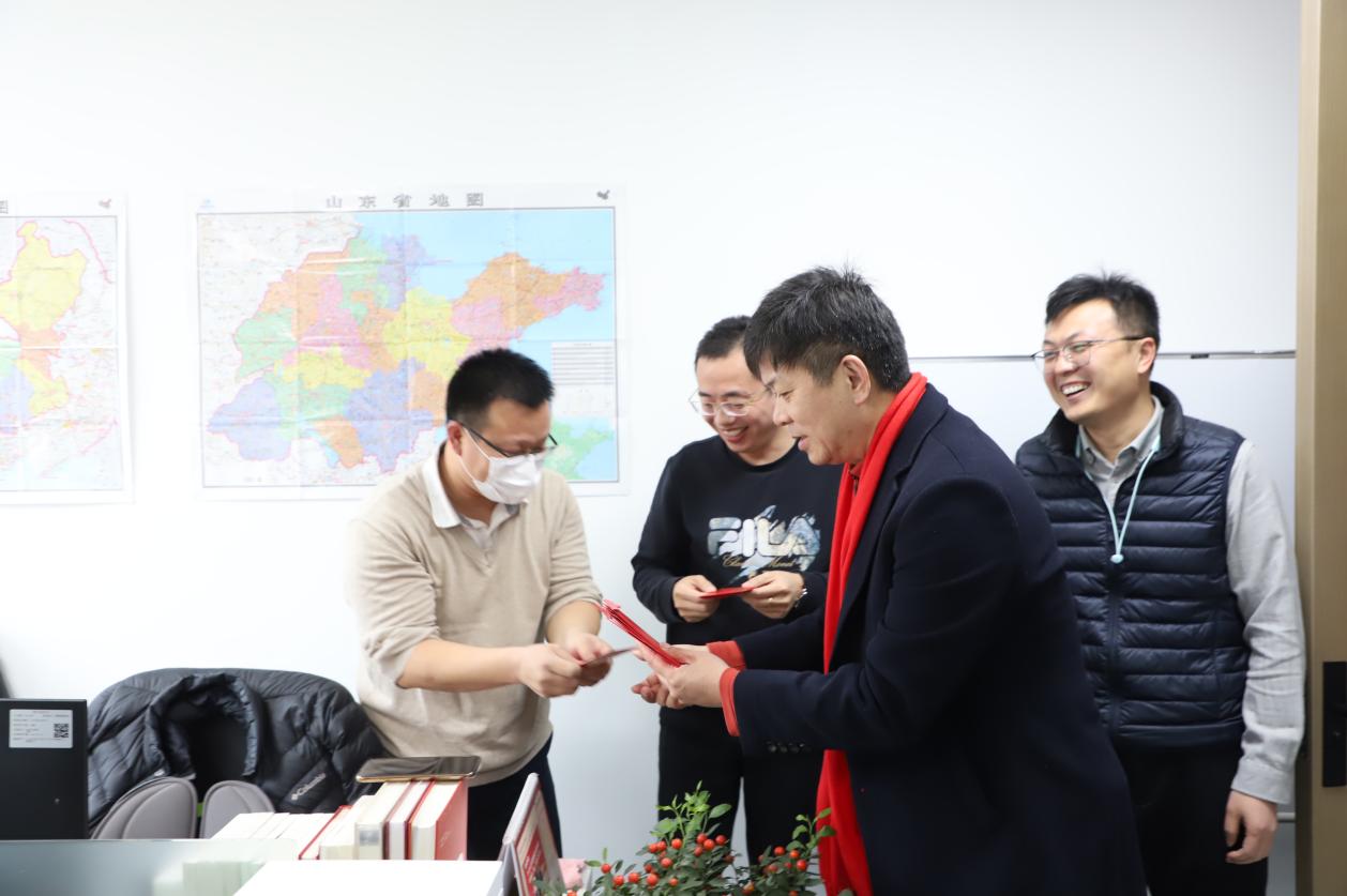 隨后,集團常務副董事長王興法,總經理張天君帶領各部門負責人深入各辦公區域,逐層走訪、逐室問候。每到一處,都與員工親切交談,親手送上開工紅包,詳細了解大家返崗后的工作狀態。從園區入口到每一間辦公室,這份新春的祝福不斷傳遞,匯聚成新一年同心奮進的強大動力。