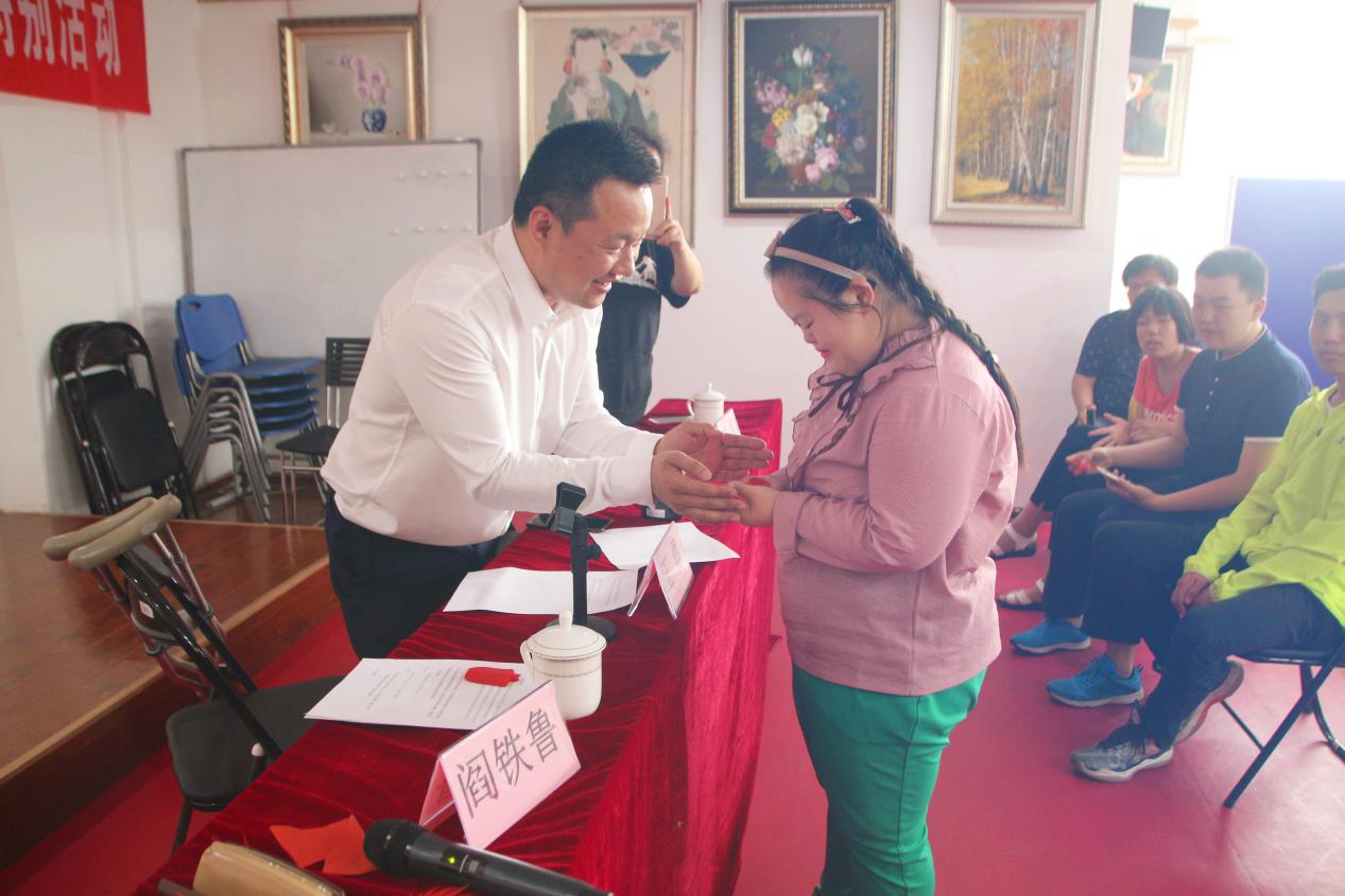 從剪紙的初級刻法到之后的實踐運用,閻鐵魯老師一一進行了講解和示范,在同學們欽佩和期待的眼神中,一幅幅栩栩如生的剪紙作品呈現(xiàn)在了大家眼前。隨后,閻老師還來到了同學們中間,更近距離的教大家剪紙,并將剪成的作品送給了在座的同學們,希望他們在今后生活中獲得更大的進步。熱情的氣氛烘托之下,幾位智障朋友還上臺展現(xiàn)了各自的才藝,贏得了大家熱烈的掌聲。