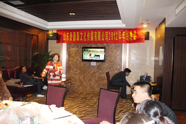 2013年2月2日,山東麥德森文化傳媒有限公司年終晚會(huì)勝利在筷樂(lè)瀟湘酒店舉行。首先王勇董事長(zhǎng)為晚會(huì)致辭,他指出公司經(jīng)過(guò)近7年的發(fā)展,特別是在2012年無(wú)論是從公司管理、企業(yè)文化、員工的向心力、凝聚力上,還是從圖書(shū)選題策劃和編輯出版的工作流程、工作效率等方面,都有很大的的突破和提高!同時(shí)也講解了2013年公司發(fā)展的方針政策以及員工的福利待遇,贏得了員工陣陣歡呼聲,員工紛紛感慨 “公司發(fā)展情景真美好,跟著這樣的領(lǐng)導(dǎo)錯(cuò)不了!”